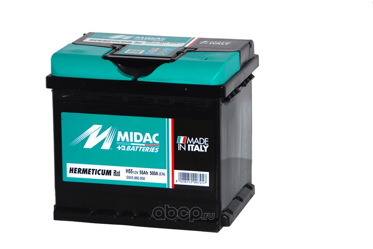 | Midac | S555060050 | Батарея аккумуляторная 55А/ч 500А обратная полярн. стандартные (Европа) клеммы | ||