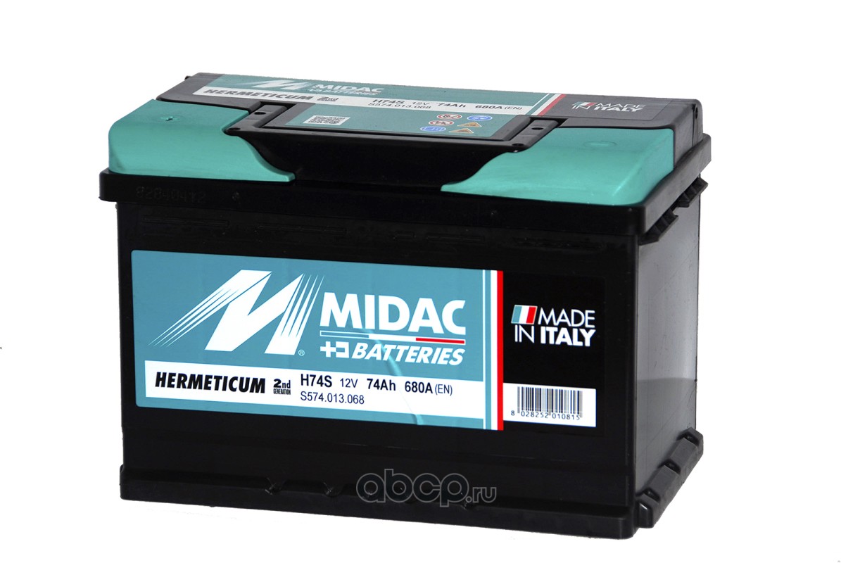 | Midac | S574013068 | Батарея аккумуляторная 74А/ч 680А прямая полярн. стандартные (Европа) клеммы | ||