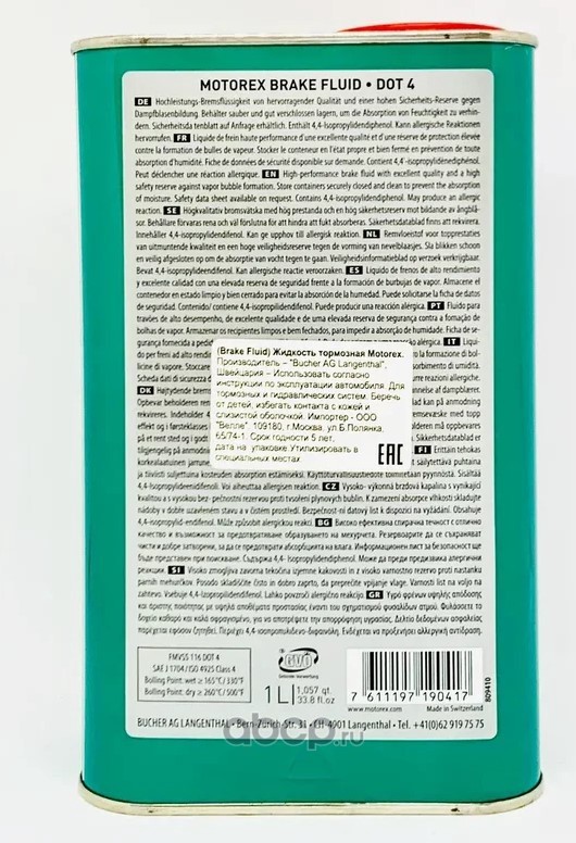 Более 90 лет BUCHER AG MOTOREX – независимая компания, крупнейший в Швейцарии производитель смазочных масел – проводит свои собственные исследования и занимается разработками в области производства современных смазочных материалов, которые уже отлично зарекомендовали себя на мировом рынке. Полный ассортимент продукции MOTOREX включает свыше 1500 наименований, вся продукция сертифицирована по стандарту ISO 9001, что свидетельствует о ее высоком качестве.Страна: Швейцария