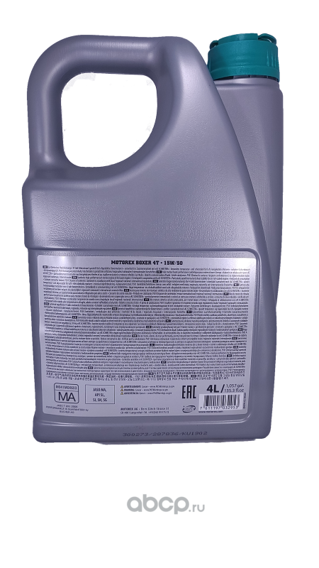 | Motorex | 300273 | MOTOREX мото масло моторное BOXER 4T 15W/50 (4л.) | ||