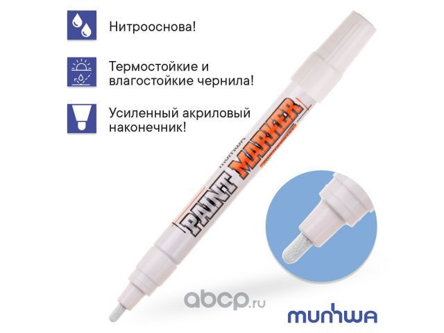 | Munhwa | IPM05 | Маркер промышл. перманентный на основе жидк. краски белый INDUSTRIAL (толщ. линии 4.0 мм. Цвет белый) | ||