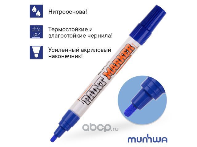 | Munhwa | IPM02 | Маркер промышл. перманентный на основе жидк. краски синий INDUSTRIAL (толщ. линии 4.0 мм. Цвет синий) | ||