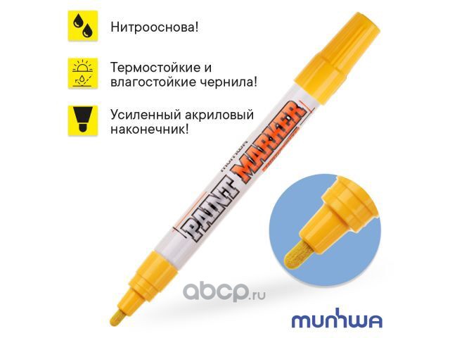 | Munhwa | IPM08 | Маркер промышл. перманентный на основе жидк. краски желтый INDUSTRIAL (толщ. линии 4.0 мм. Цвет желтый) | ||