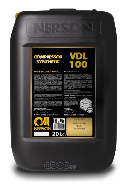 Компрессорные масла Compressor Synthetic VDL 100 20л (РАО)