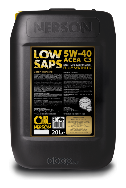 Всесезонное, энергосберегающее, полностью синтетическое моторное масло Red Line Professional Fully Synthetic ACEA C2; C3 5W-30 20л