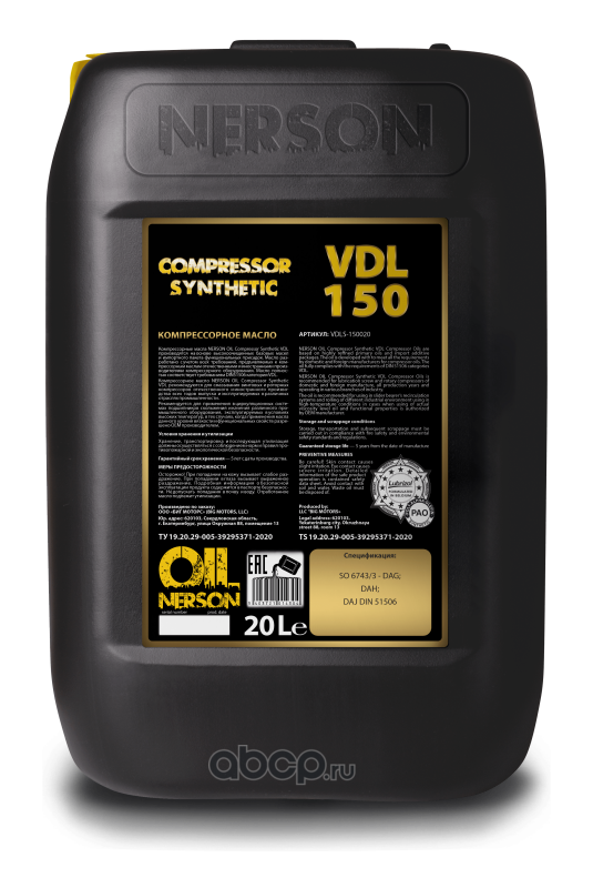 Компрессорные масла Compressor Synthetic VDL 150 20л (РАО)