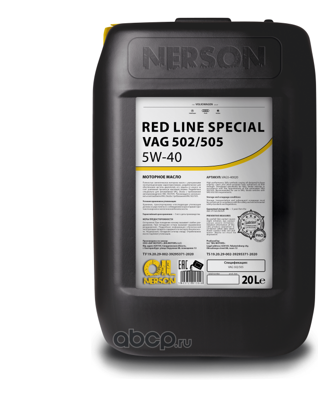 | NERSON OIL | VAG540020 | Полностью синтетическое моторное масло Red Line Special VAG 502/505 5W-40 20л | ||