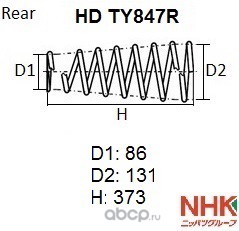 | NHK | HDTY847R | Пружина подвески усиленная NHK HEAVY DUTY (HD) | ||