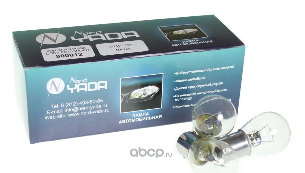NORD YADA 800012 Лампа P21W 12V BA15s (ук.пов. и стоп-сигнал)