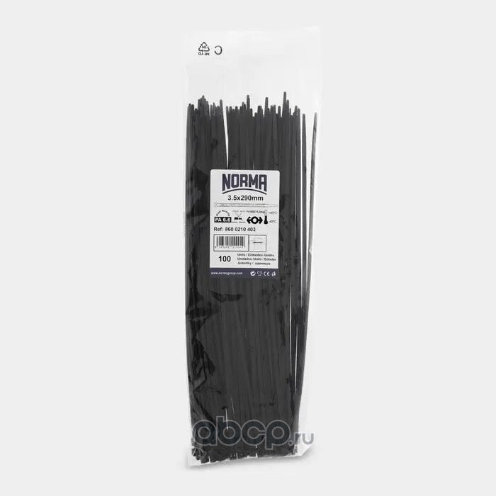Хомут-стяжка пластиковый 4.8х390, морозостойкий, черный (100 шт. в уп.)