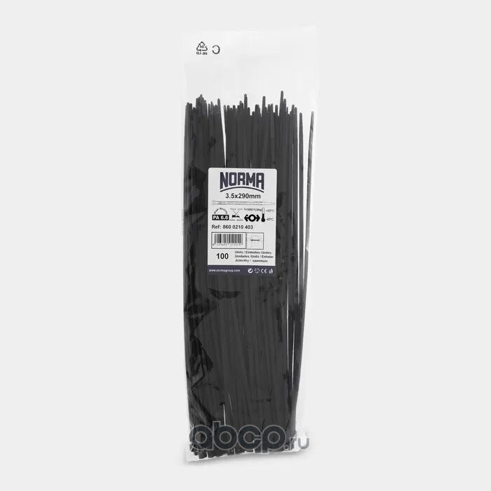 | NORMA | 08600210702 | Хомут-стяжка пластиковый 7.8х180, морозостойкий, черный (100 шт. в уп.) | ||