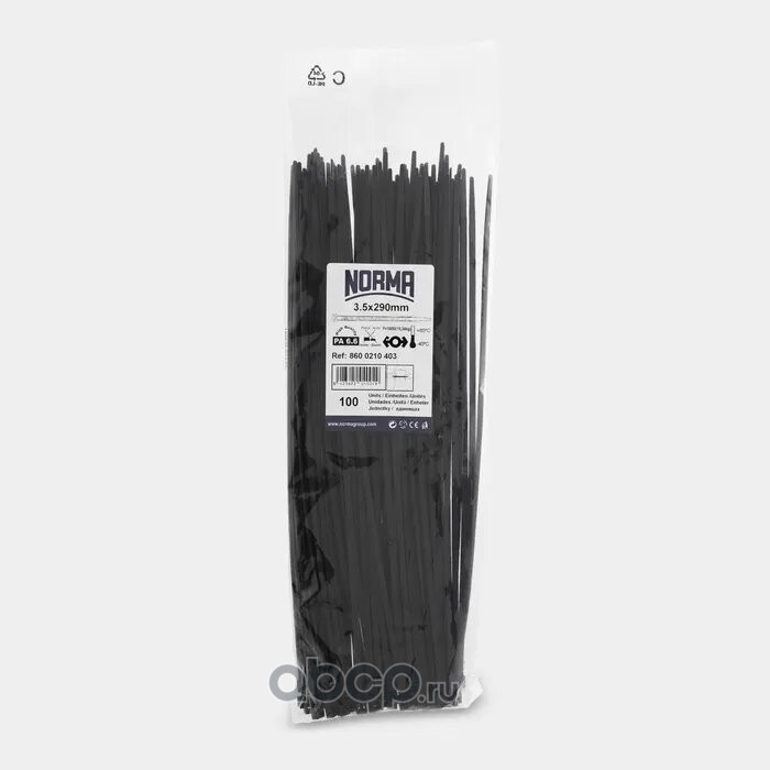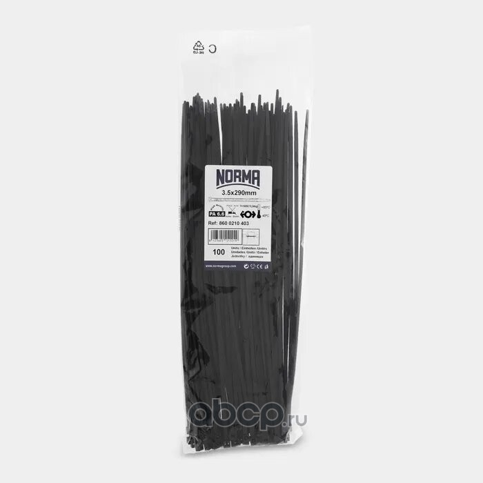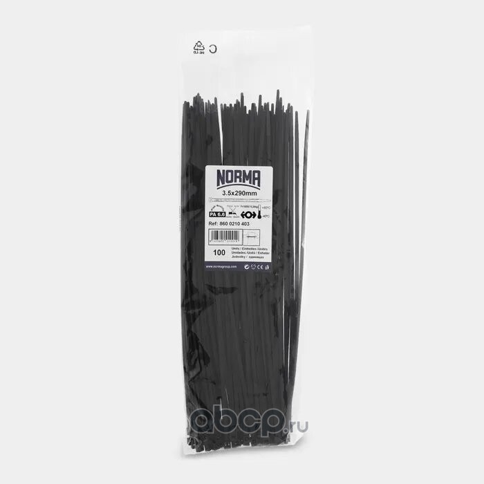 | NORMA | 08600210708 | Хомут-стяжка пластиковый 7.5х750, морозостойкий, черный (100 шт. в уп.) | ||