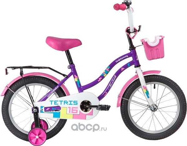 Велосипед NOVATRACK 16" TETRIS фиолетовый, тормоз нож, крылья цвет, багажник, корзина, полная защ.це