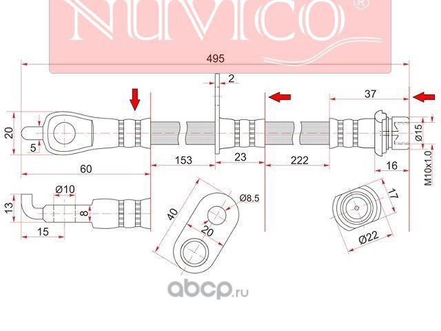 | NUVICO | NU7SE26837 | Шланг тормозной передний (Таиланд) TOYOTA HILUX -95/ TOYOTA HILUX 88-/REGIUS/HIACE RCH42 LH=RH |