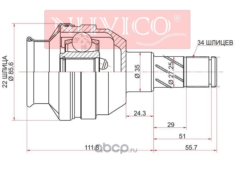 | NUVICO | NU7AV409 | Шрус внутренний DAEWOO NEXIA 95-/CHEVROLET LANOS 97-02/NUBIRA | ||