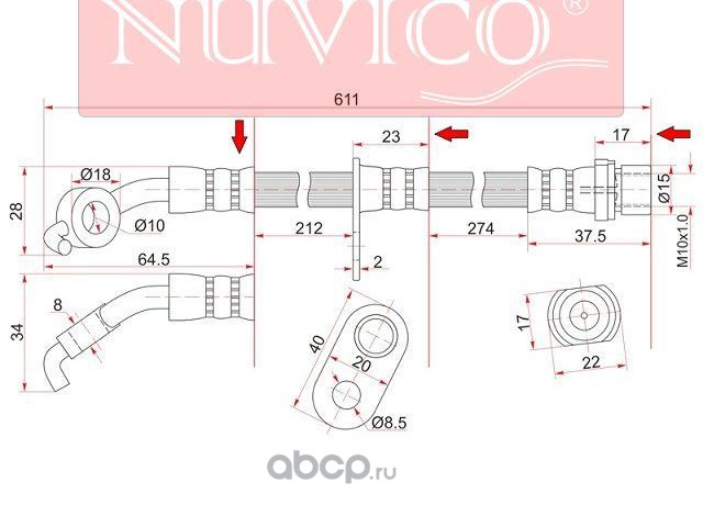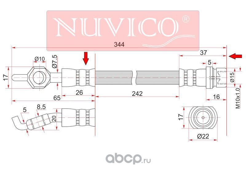 | NUVICO | NU7SE26894 | Шланг тормозной передний (Таиланд) TOYOTA LAND CRUISER 92-98 LH=RH промежуточный | ||