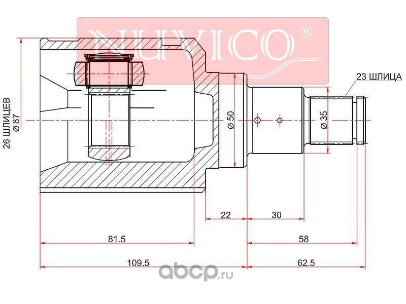| NUVICO | NU7SE55119 | Шрус внутренний FR LH TOYOTA HARRIER GSU3#/LEXUS RX3#0 06-08 2GRFE | ||