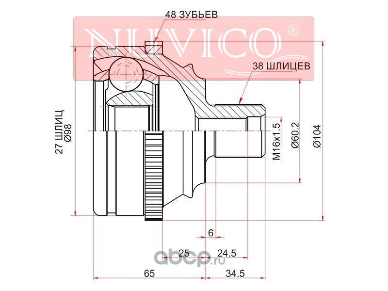 | NUVICO | NU7SE55482 | Шрус наружный VOLKSWAGEN TRANSPORTER 90-03 | ||