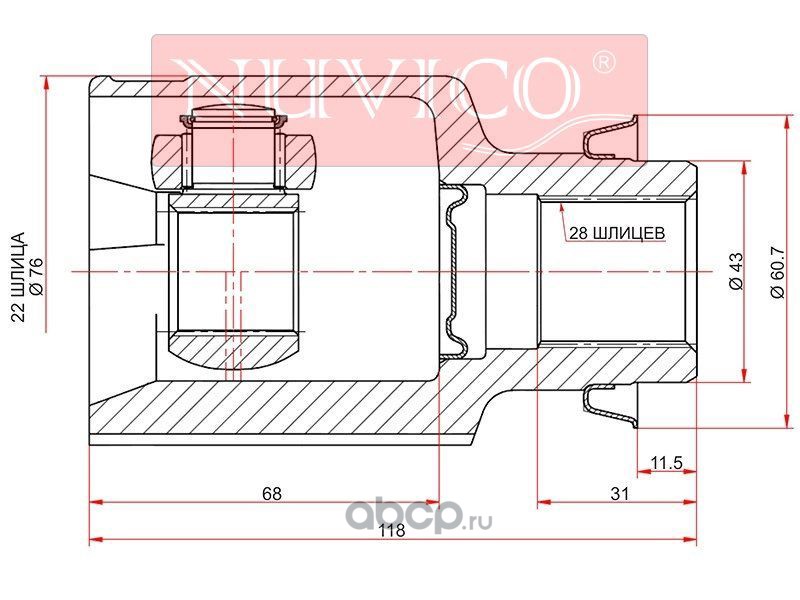 | NUVICO | NU7SE55524 | Шрус внутренний SKODA FABIA MK2 07-/OCTAVIA 04-12/VOLKSWAGEN COLF V 03-09/JETTA V/VI 05-11 | ||