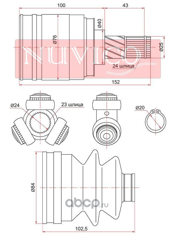 | NUVICO | NU7SE55127 | Шрус внутренний TOYOTA HILUX ##N2#/FORTUNER ##N5# | ||