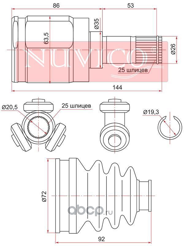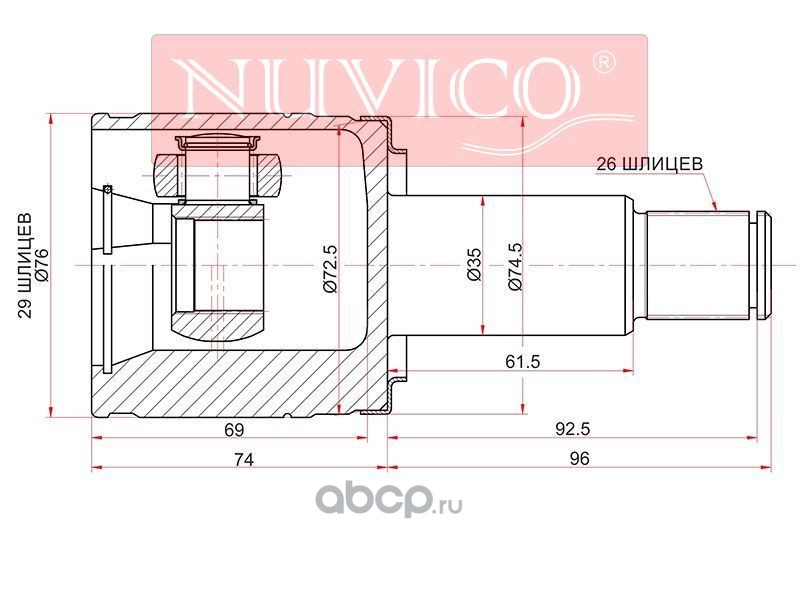 | NUVICO | NU7SW741 | Шрус внутренний RH NISSAN TEANA J32 VQ25DE 09-15 | ||