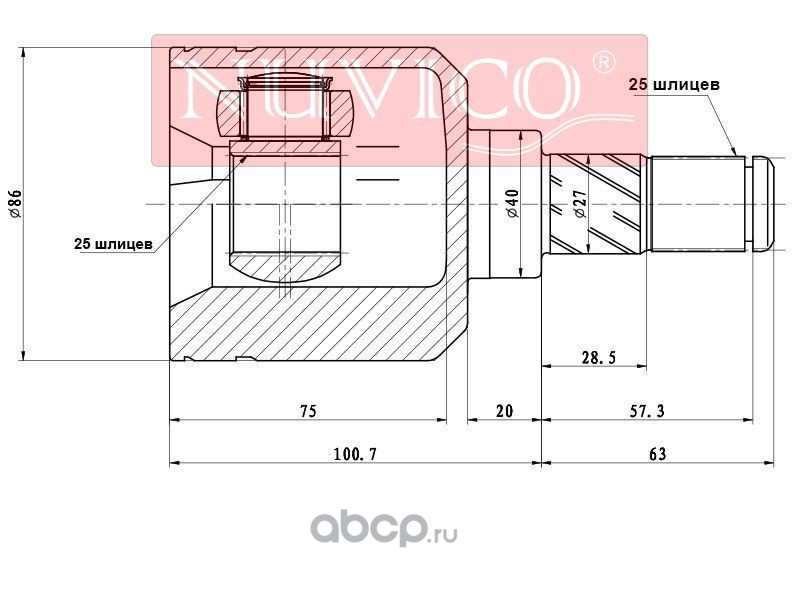 | NUVICO | NU7AV628 | Шрус наружный HONDA PILOT 09-15/ACURA MDX YD2 07-13 | ||