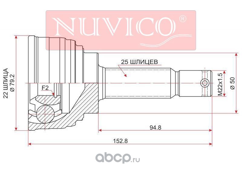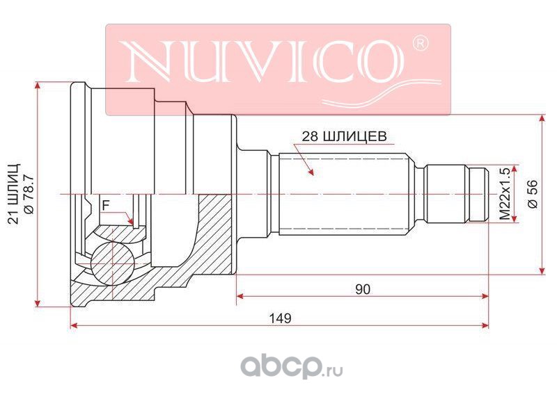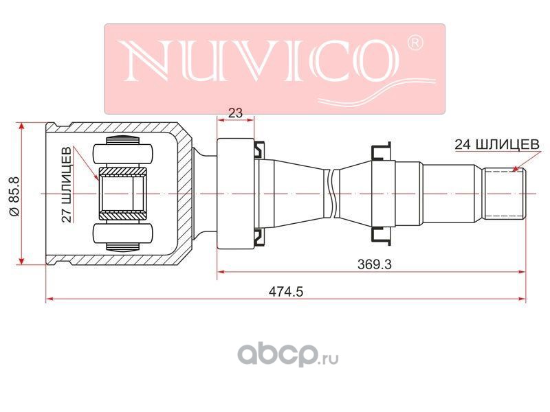 | NUVICO | NU7SW249 | Шрус наружный KIA SPECTRA 1.6 98-04/SEPHIA II 1.6 98-04 |