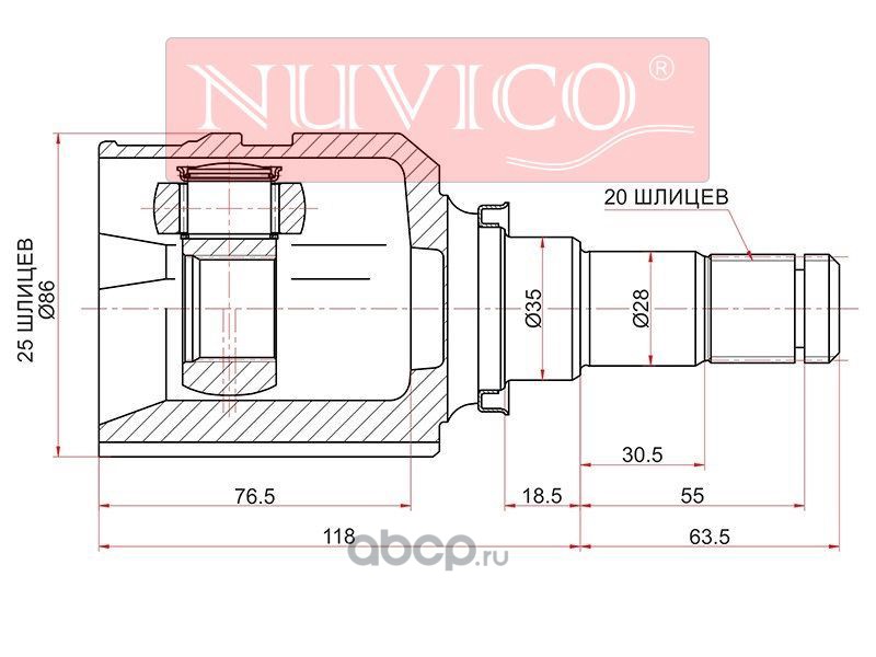 | NUVICO | NU7SE55020 | Шрус внутренний TOYOTA CAMRY ACV40 2AZFE LH (сборка Россия) | ||