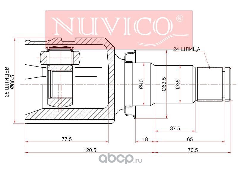 | NUVICO | NU7SW524 | Шрус внутренний RH MITSUBISHI ASX GA8W GA0 13-14/OUTLANDER GF/DELICA D5 | ||