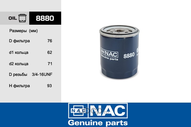| Nac | 8880 | Фильтр масляный | ||