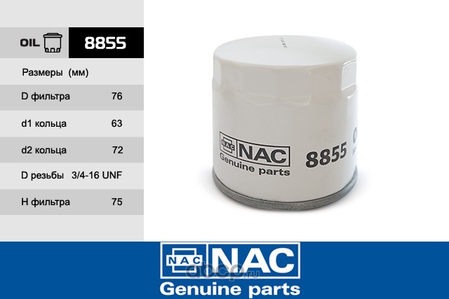 | Nac | 8855 | Фильтр масляный | ||