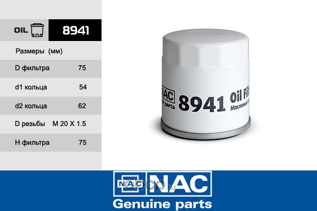 | Nac | 8941 | Фильтр масляный 8941 NAC/20 | ||