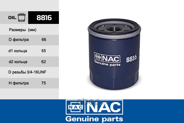 | Nac | 8816 | Фильтр масляный Toyota RAV-4 2.0 1 | ||