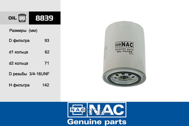 | Nac | 8839 | Фильтр масляный |