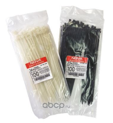 | Nova | NV10025W | Хомут нейлоновый (PA) 2,5*100 Бел Б/Э (100/200) | ||