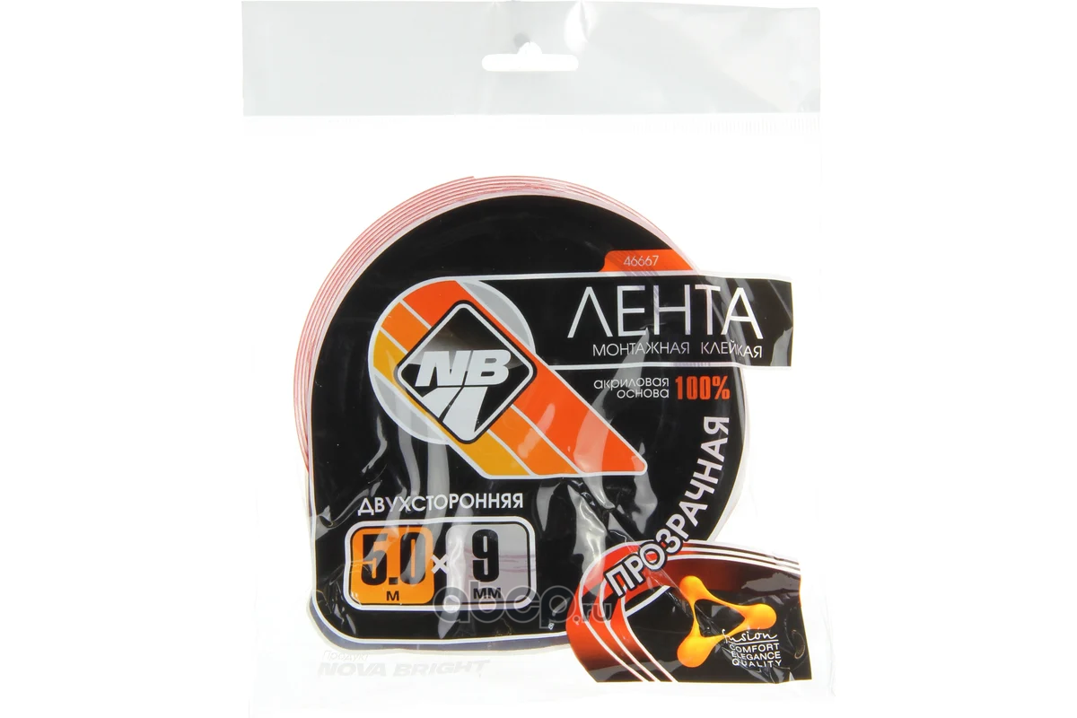| Nova Bright | 46667 | Скотч двухсторонний 9мм х 5м красный + прозрачный (акриловая основа) | ||