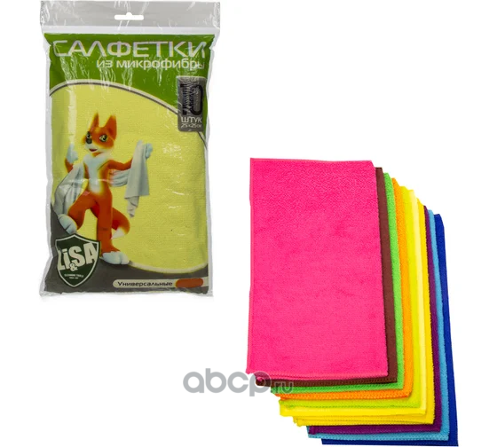 | Nova Bright | 44430 | Салфетки из микрофибры 25х25см цвета в ассортименте (LS1004) (10шт)(47388) Li-Sa | ||