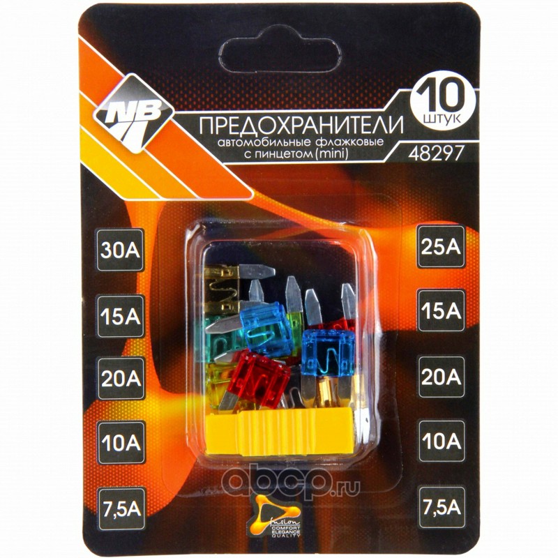 | Nova Bright | 48297 | Предохранители флажковые в блистере MINI 7,5А-30А с захватом (10шт) | ||
