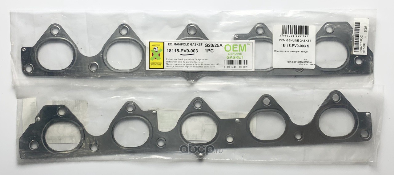| OEM GENUINE GASKET | 18115PV0003S | Прокладка коллектора - выпуск | ||