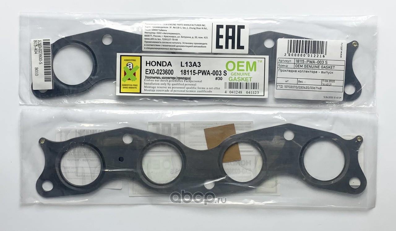 | OEM GENUINE GASKET | 18115PWA003S | Прокладка коллектора - выпуск | ||