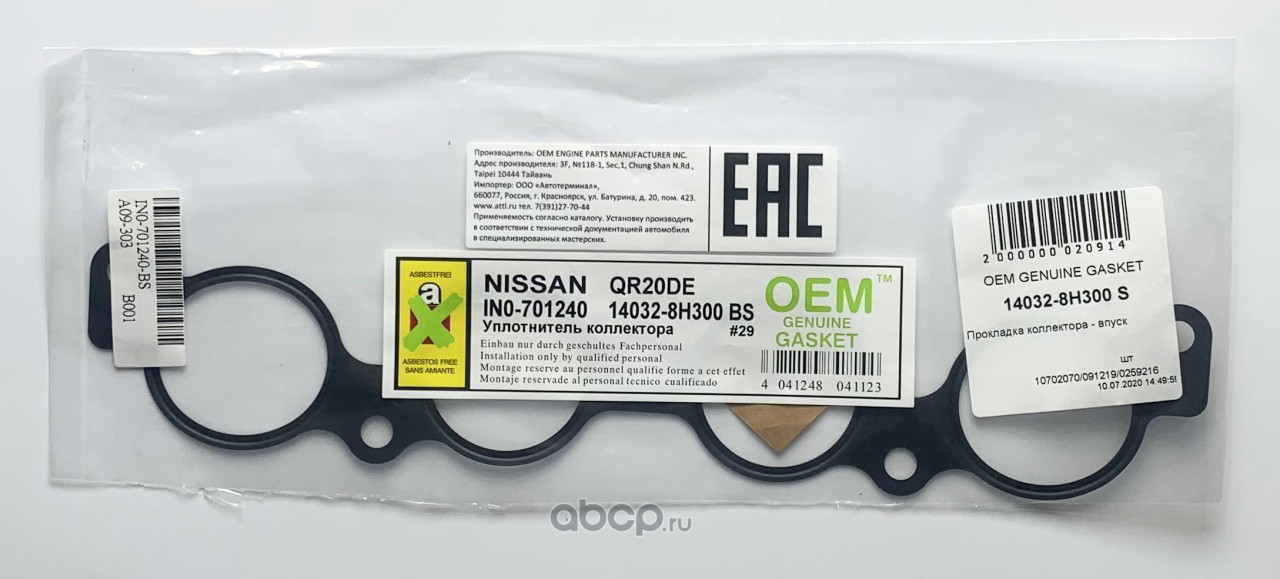 | OEM GENUINE GASKET | 14032AQ805S | Прокладка коллектора - впуск | ||