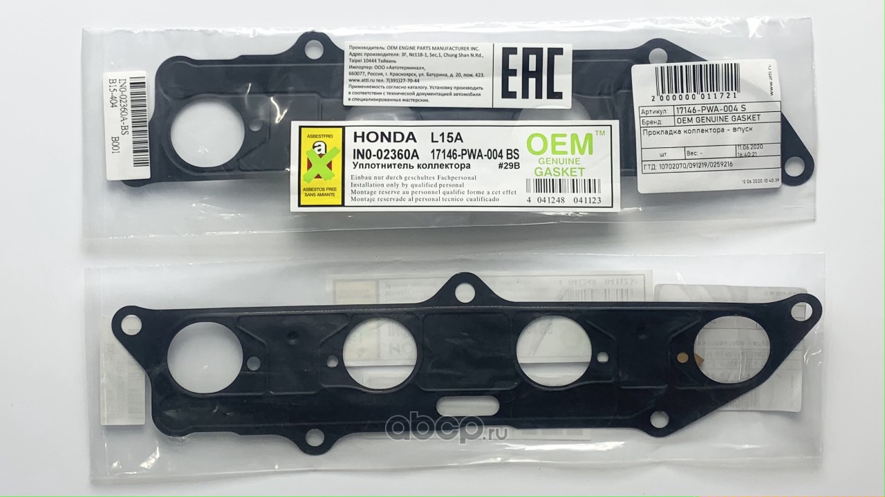 | OEM GENUINE GASKET | 17146PWA004S | Прокладка коллектора - впуск | ||