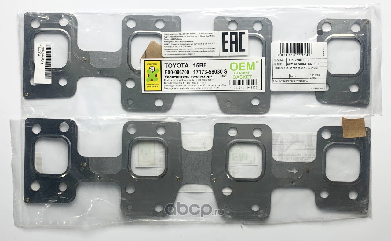 | OEM GENUINE GASKET | 1717358030S | Прокладка коллектора - выпуск | ||