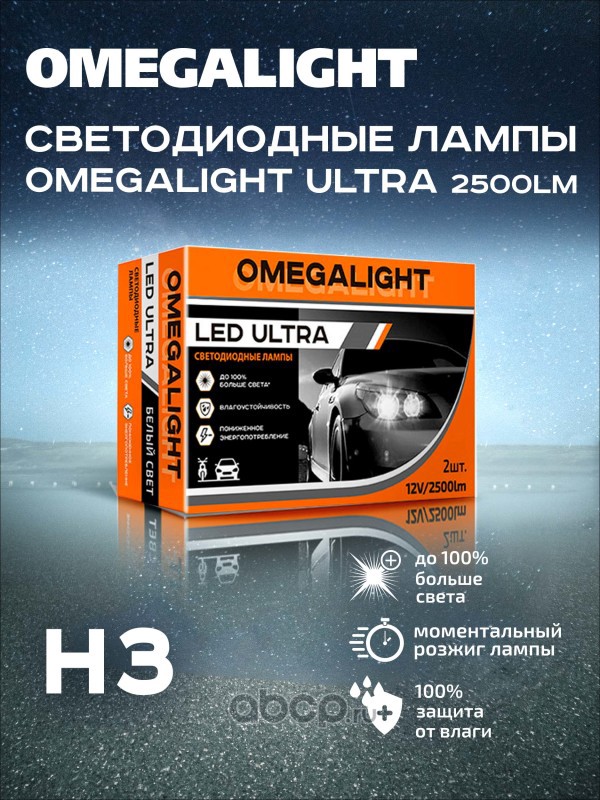 | OMEGALIGHT | OLLEDH3UL2 | Комплект ламп LED Omegalight Ultra H3 2500lm (2шт) | ||