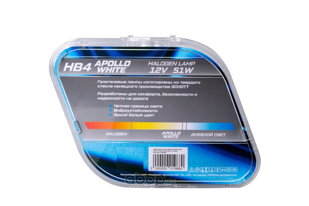 | OPTIMA LIGHT | HAPHB4 | Галогенные лампы Optima Apollo HB4 White 4500K, комплект 2 лампы | ||