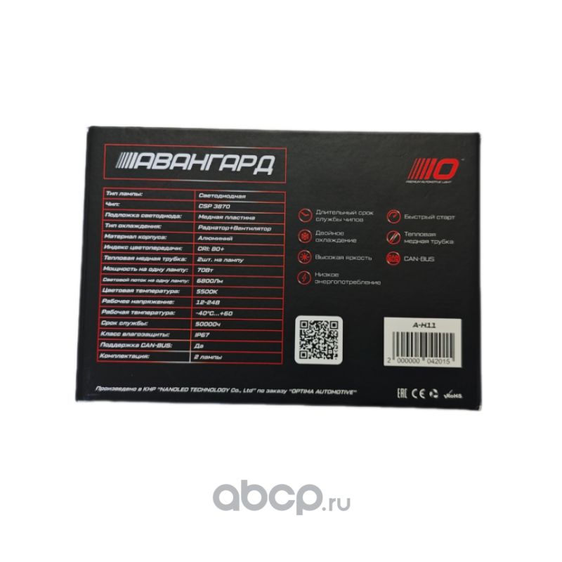 | OPTIMA LIGHT | AH11 | Лампа светодиодная OPTIMA LIGHT H11 PGJ19-2 12,24V 70W 5500 2 шт. | ||
