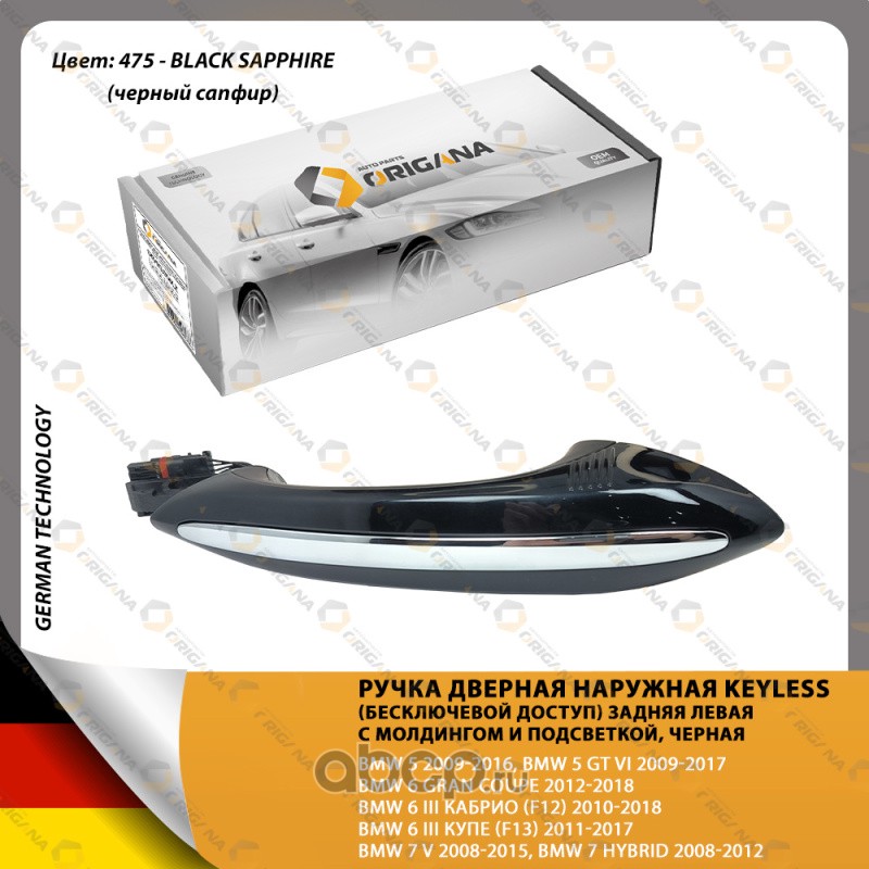 | ORIGANA | ORHKL006LZ | РУЧКА ДВЕРНАЯ НАРУЖНАЯ ЗАДНЯЯ ЛЕВАЯ KEYLESS (бесключевой доступ) с молдингом и подсветкой ЧЁРНАЯ | ||