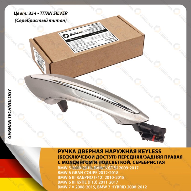 | ORIGANA | ORHKL008R | Ручка дверная наружная ПЕРЕДНЯЯ/ЗАДНЯЯ ПРАВАЯ KEYLESS (бесключевой доступ) с молдингом и подсветкой СЕРЕБРИСТАЯ | ||