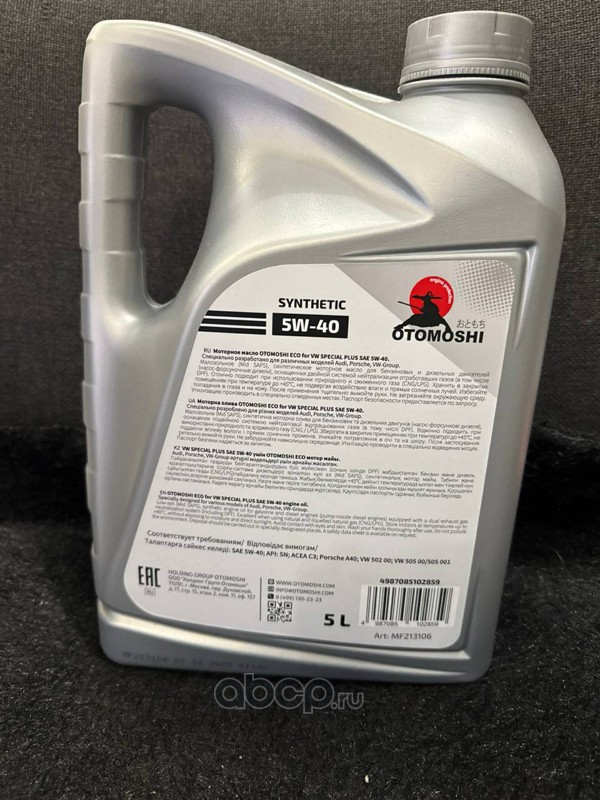 OTOMOSHI MF213106 Масло моторное синтетика OTOMOSHI ECO for VW SPECIAL PLUS 5W-40 5 л.
