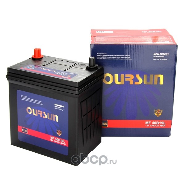 | OURSUN | MF40B19L | Батарея аккумуляторная 38А/ч 330А обратная полярн. стандартные (Европа) клеммы | ||